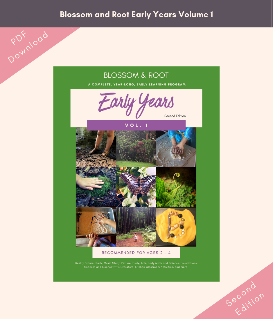 Blossom and Root Early Years Vol. 1 (ages 2 - 4) is a hands-on, play-based secular preschool program for homeschooling families. Includes 36 weeks of joy-filled learning with your child.