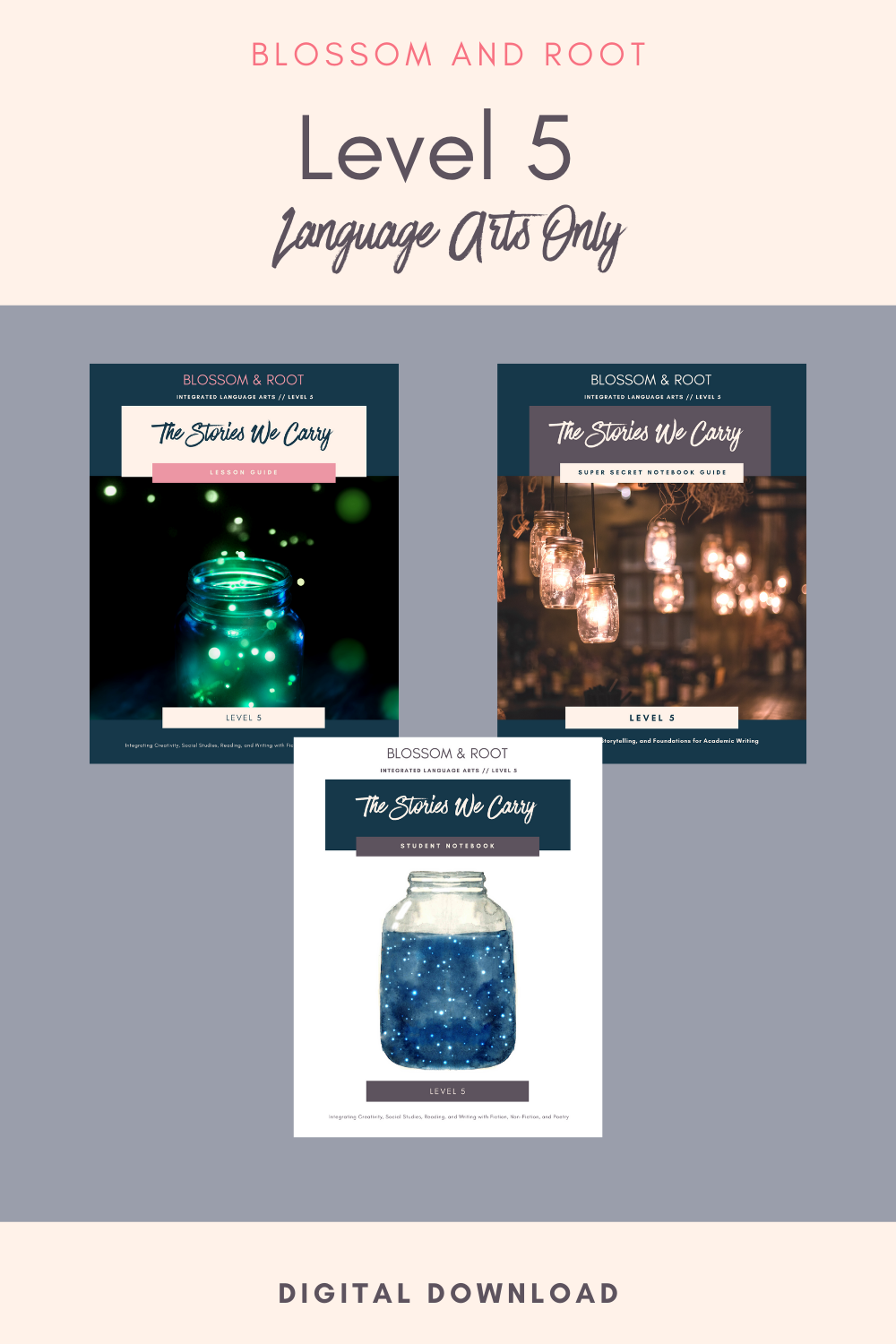 4. Samples and Scope / Sequence: Samples and scope / sequence for fifth grade / level 5 can be found on our website at https://blossomandroot.com/fifth-grade/.